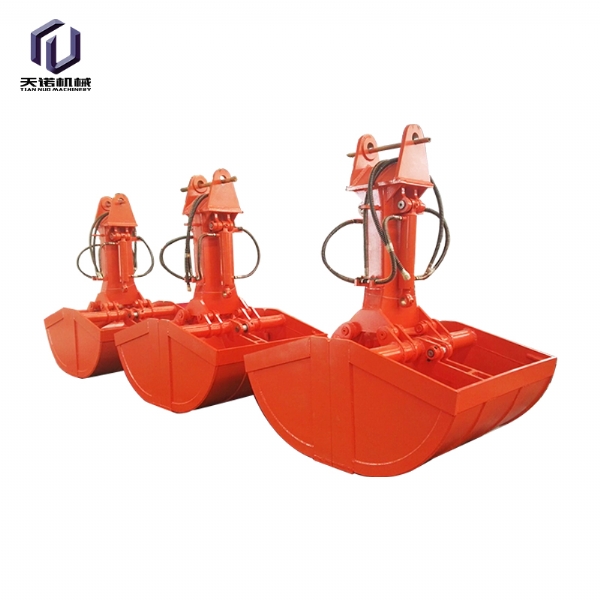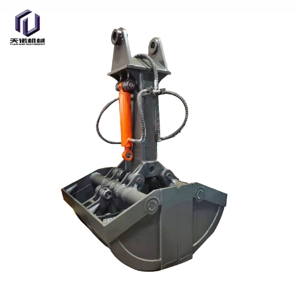 挖掘機貝型斗(也叫抓斗,哈殼斗)分為液壓回轉(zhuǎn)和不帶液壓回轉(zhuǎn)兩種。不帶液壓回轉(zhuǎn)的貝型斗采用挖掘機鏟斗油缸的油路,不用另外添加液壓閥塊及管路;帶液壓回轉(zhuǎn)的貝型斗要添加一套液壓閥塊及管路來控制,油缸配置活塞保護裝置。