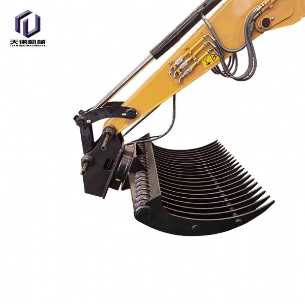 鏟斗夾:又名拇指夾,抓取重量約2.5噸,在小型木材、棒狀物、條狀物的抓取上面有優(yōu)勢(shì),適用于市政建設(shè)、二次拆除、礦山等大多數(shù)作業(yè)環(huán)境要求,適合8-50噸挖掘機(jī)使用;